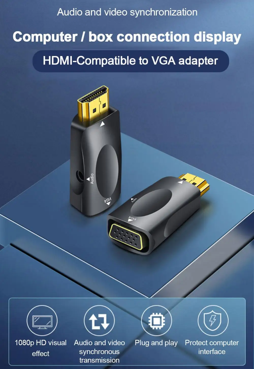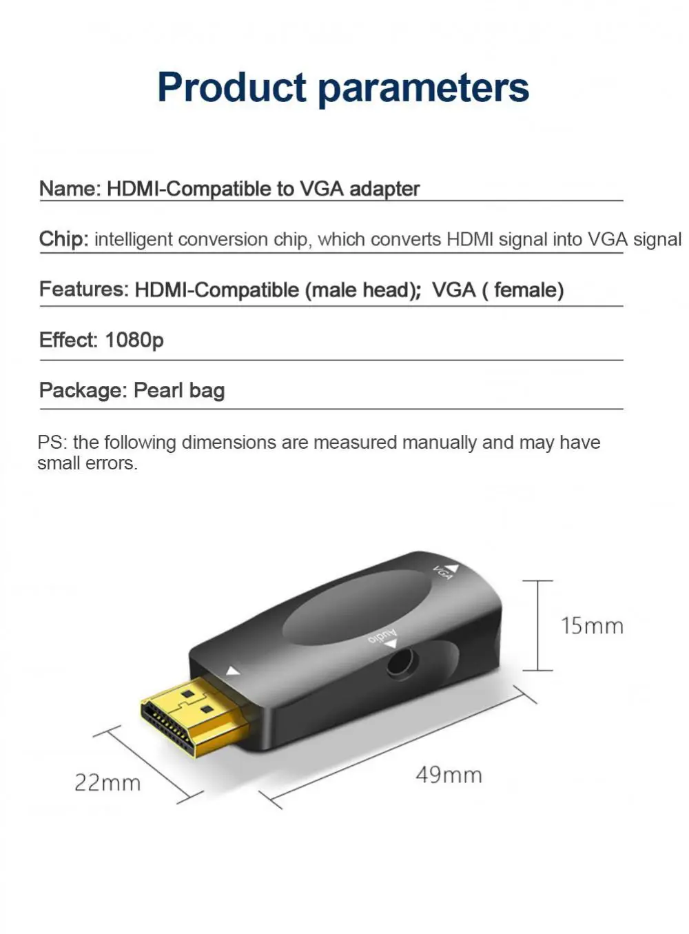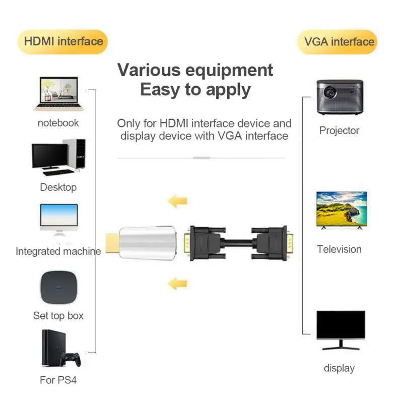 1 este producto es un convertidor digital a analógico portátil, que se puede convertir en salida de Audio y video VGA definiendo la entrada de fuente de señal HDMI de alta definición de acuerdo con el estándar.