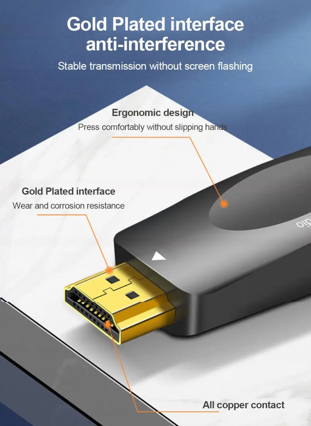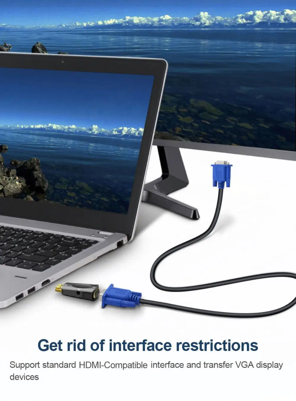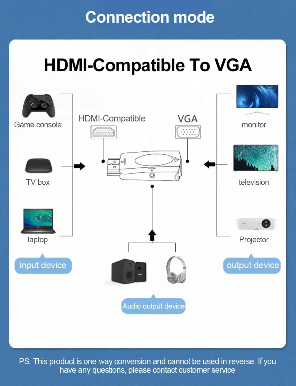 1 este producto es un convertidor digital a analógico portátil, que se puede convertir en salida de Audio y video VGA definiendo la entrada de fuente de señal HDMI de alta definición de acuerdo con el estándar.