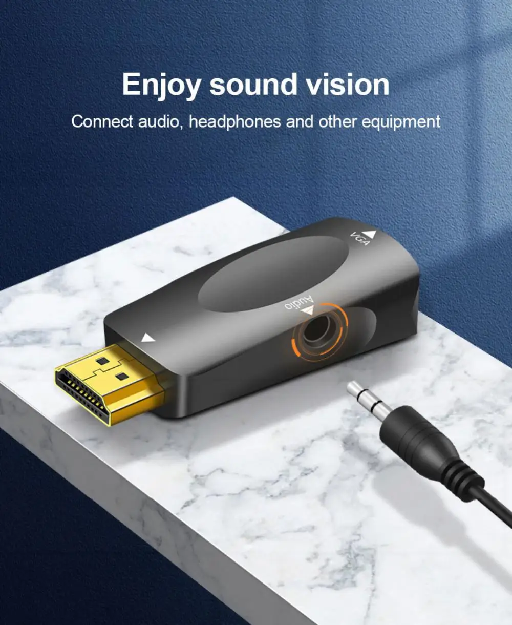 Convertidor Hdmi 1080P con audio proyector de ordenador convertidor HD adaptador hdmi giratorio vga hembra