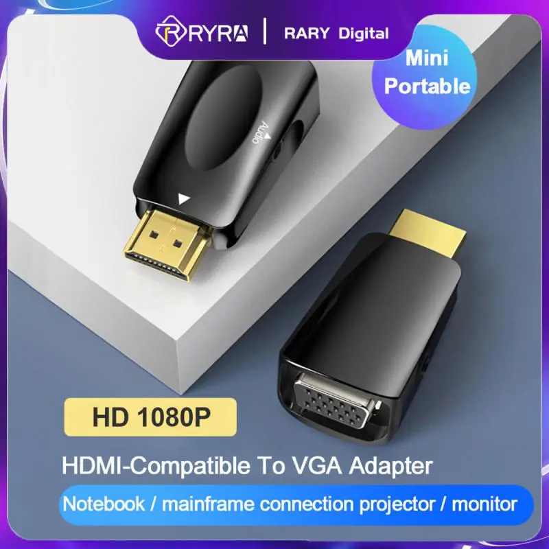 Comprar RYRA-adaptador macho a VGA hembra compatible con HDMI, convertidor de Cable de Audio HD 1080P Jack para portátil, TV Box, proyector de pantalla de ordenador