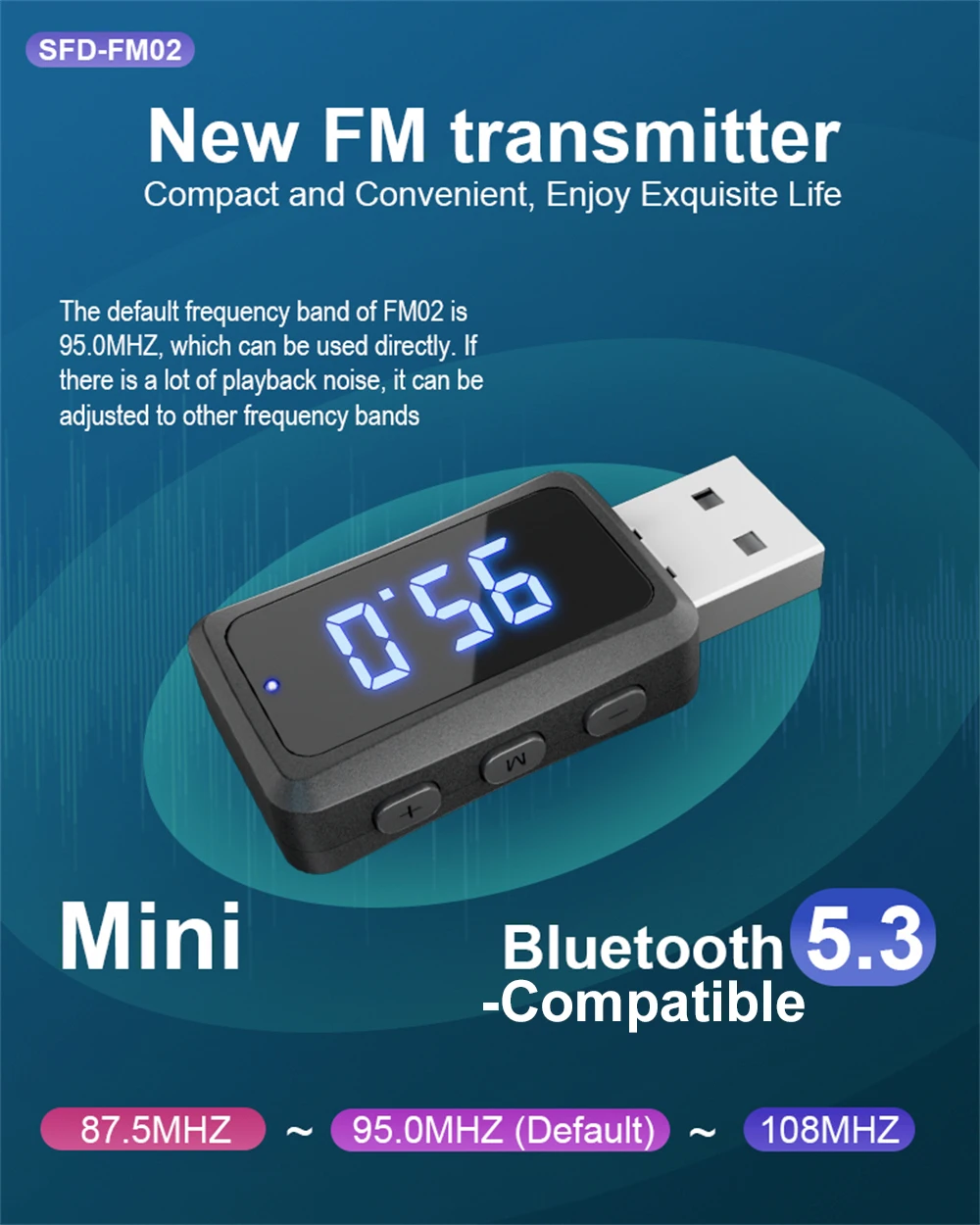 2. Configure la banda de frecuencia FM a través del botón M multifunción, luego encienda la radio del automóvil y ajuste la banda de frecuencia FM de la radio para que sea coherente con la de FM02.
