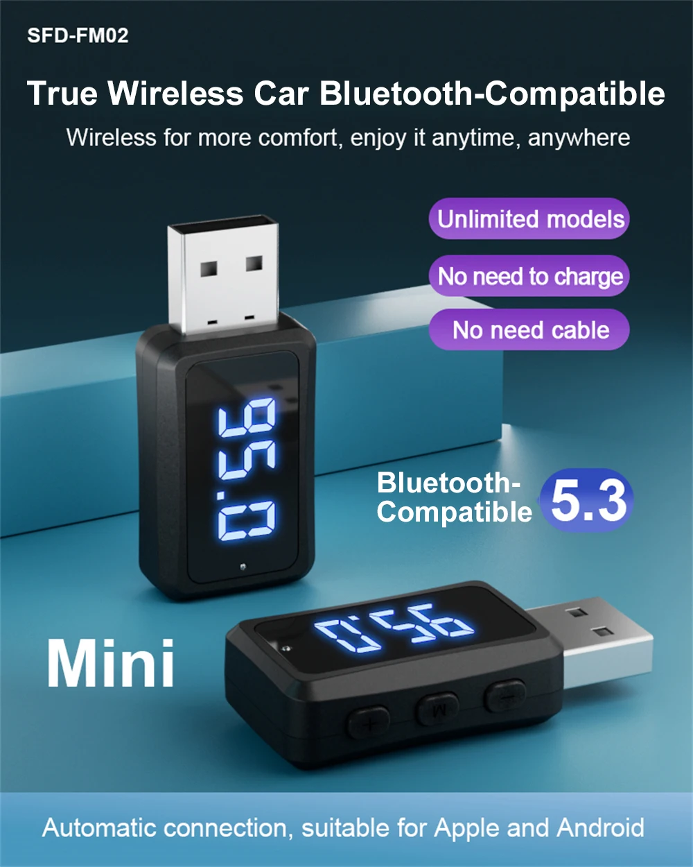 Este producto se utiliza principalmente en escenas de automóviles, utilizando la última tecnología 5,3 compatible con Bluetooth y tecnología de modulación de frecuencia FM madura para permitir que los fanáticos del automóvil disfruten fácilmente de la música inalámbrica del automóvil.