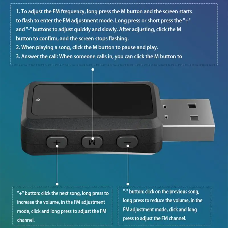 1. Para FM ajustar la frecuencia, mantenga presionado el botón M y la pantalla comenzará a parpadear para ingresar al modo de ajuste FM. Pulsación larga o corta los botones "" y "-" para ajustar rápida y lentamente. Después de ajustar, haga clic en el botón M para confirmar y la pantalla dejará de parpadear.