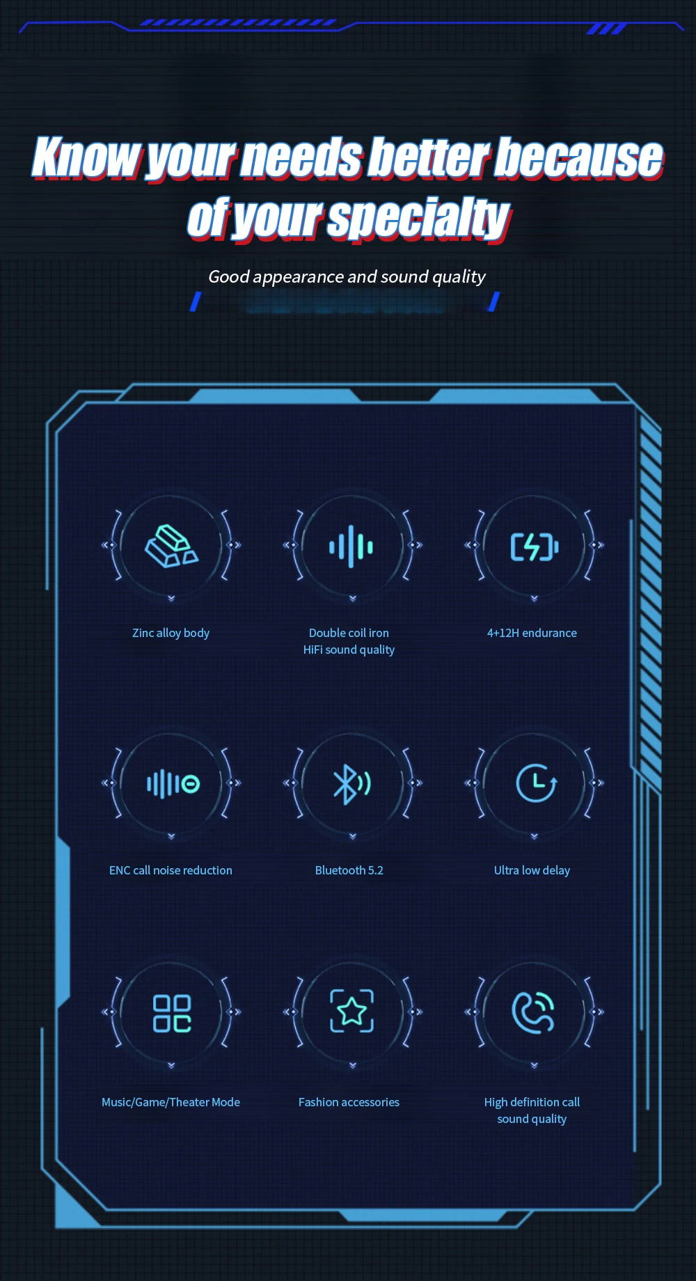 Auriculares inalámbricos Bluetooth RYRA, tapones para los oídos TWS de Bajo retraso, auriculares para juegos de deporte E impermeables, teléfono móvil a prueba de sudor, ruido Universal