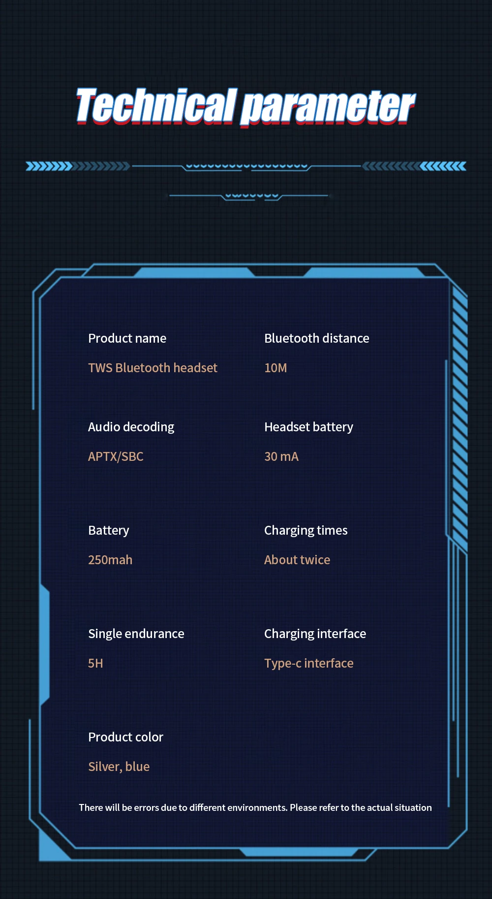 2. Capacidad de la batería: 30mAh (batería de auriculares) 250mAh (batería de cámara de carga)