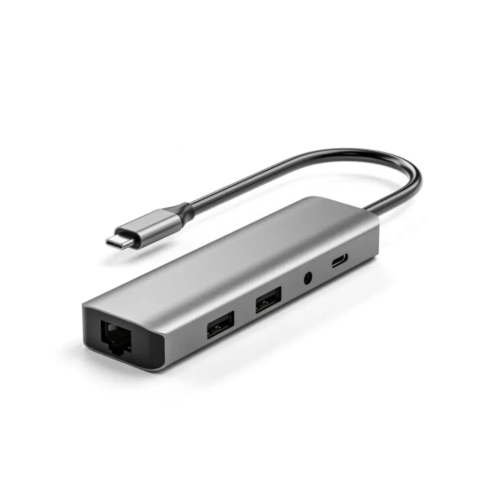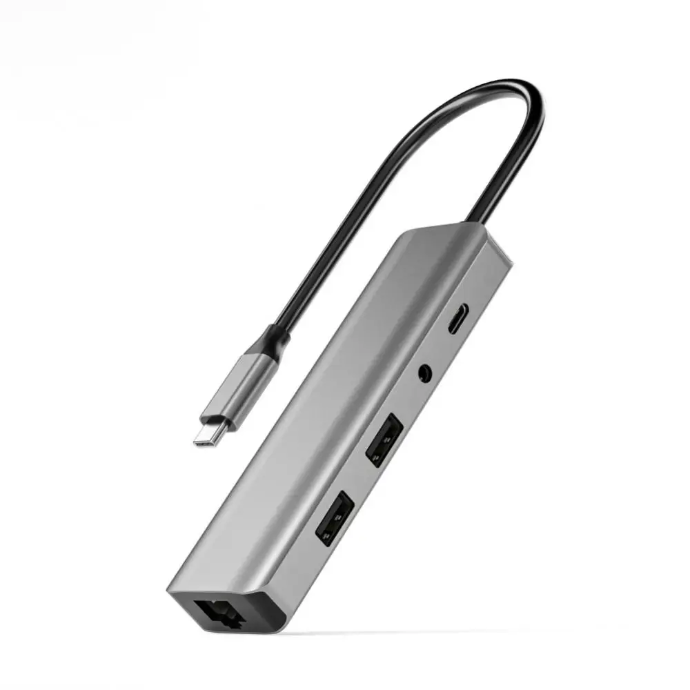 Base de expansión de 6 puertos USB3.0 Hub 100Mbps RJ45 Estaciones de acoplamiento Divisor multipuerto 4K 60Hz Adaptador de carga rápida PC Laptop