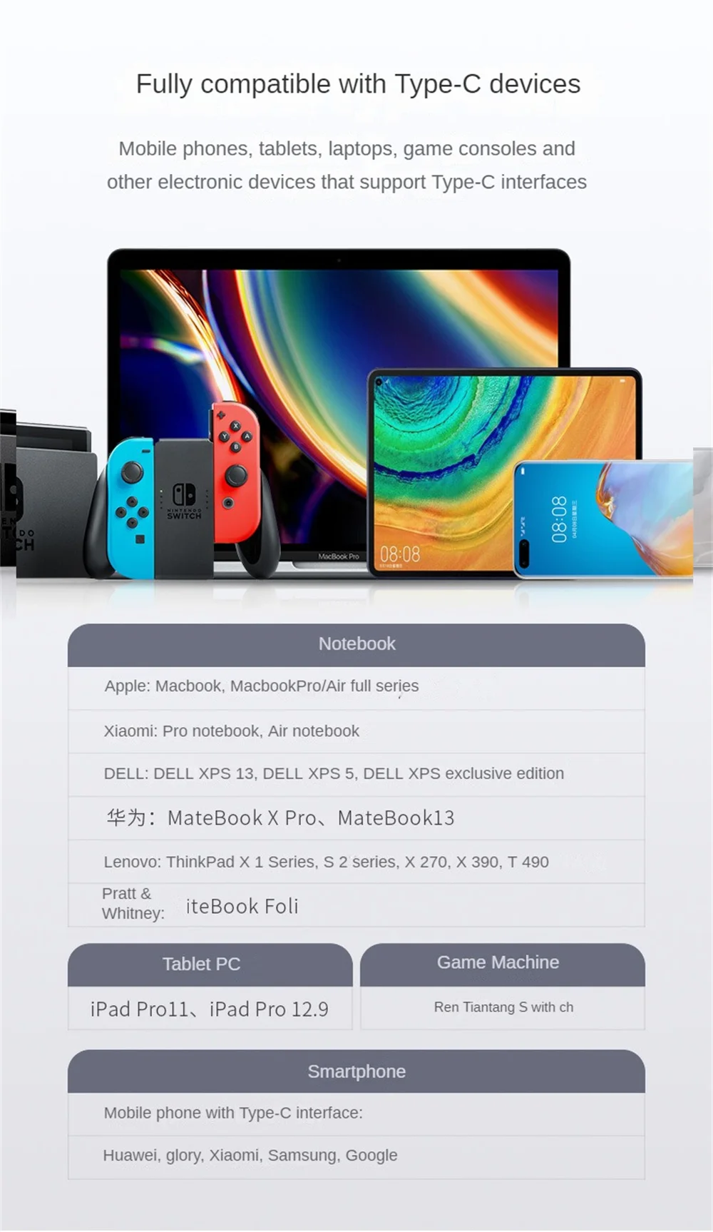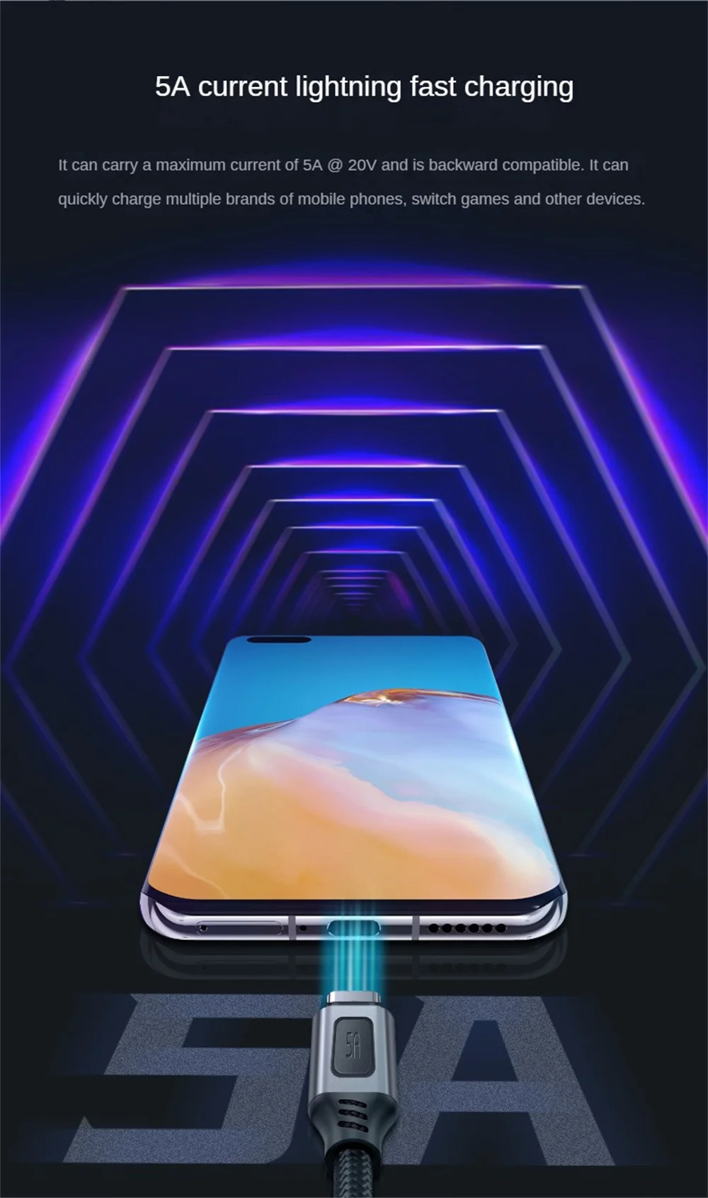 2. 【Carga rápida relámpago 】: puede transportar hasta 5A a 20V de corriente, compatibilidad con versiones anteriores y puede cargar rápidamente teléfonos móviles de varias marcas, cambiar de juego y otros dispositivos