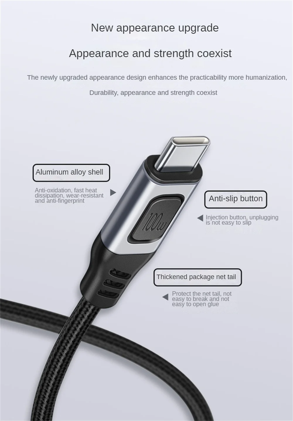 5. 【Actualización apariencia】 de: el diseño de apariencia recientemente actualizado mejora la practicidad, la durabilidad y la fuerza del valor del color de manera más humana. Carcasa de aleación de aluminio, antioxidante, disipación de calor rápida, resistente al desgaste y antihuellas; botón antideslizante, botón de inyección, desenchufar e insertar no son fáciles de deslizar; engrosamiento y envoltura de la cola de la red, protección de la cola de la red, no es fácil de romper y no es fácil abrir el pegamento
