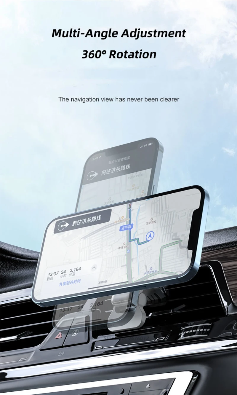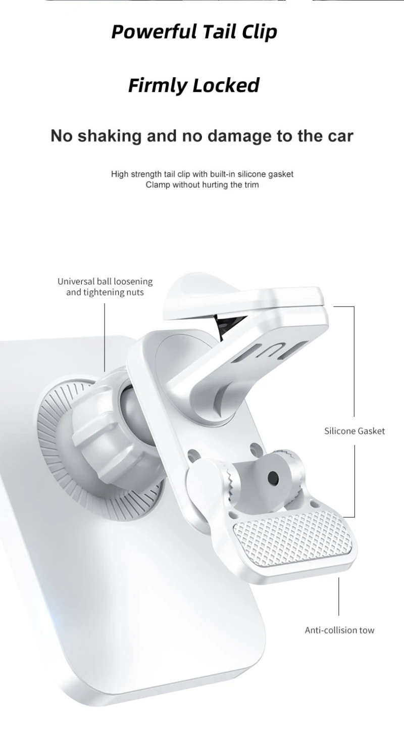 1. Instalación segura: este soporte de teléfono para automóvil está equipado con una versión mejorada del clip de ventilación, que puede fijar de forma segura su teléfono inteligente en la ventilación del automóvil.