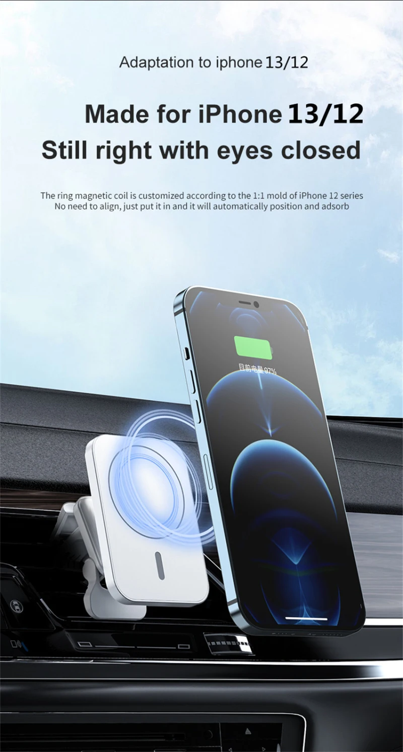 4. Carga inalámbrica rápida: absorción magnética de alta velocidad de 15W y carga rápida, llena el teléfono móvil de sangre y revive inmediatamente.