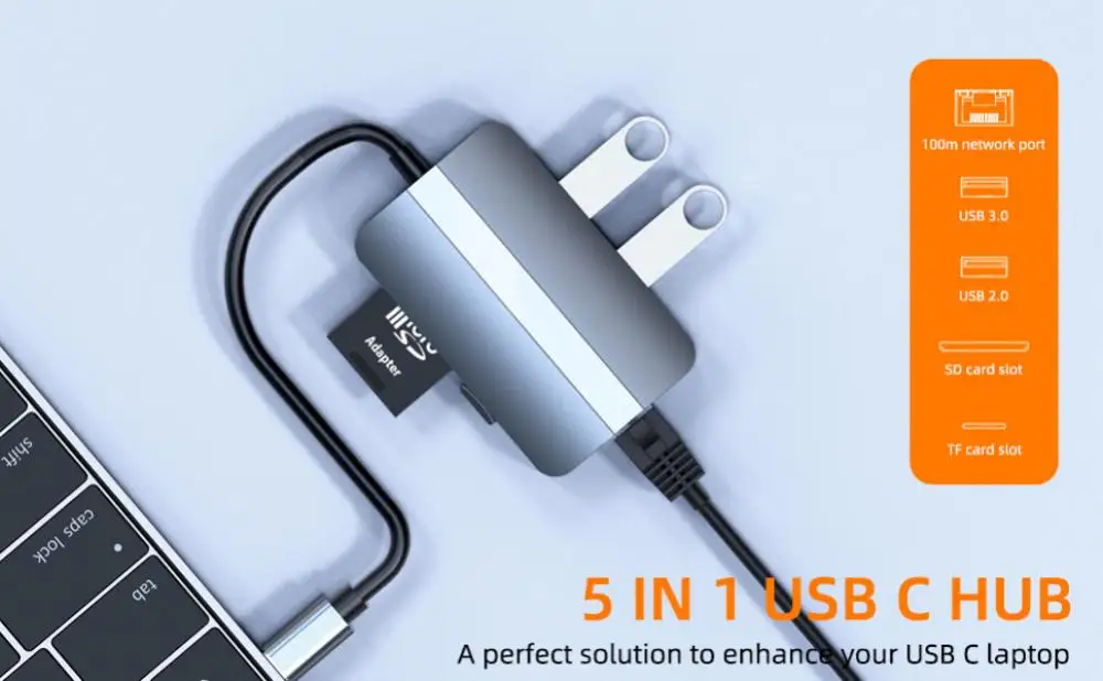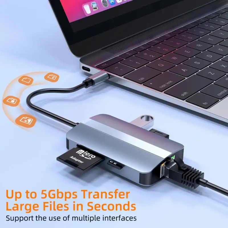 Puerto USB C 5 en 1: RJ45 USB3.0 USB2.0 TF SD