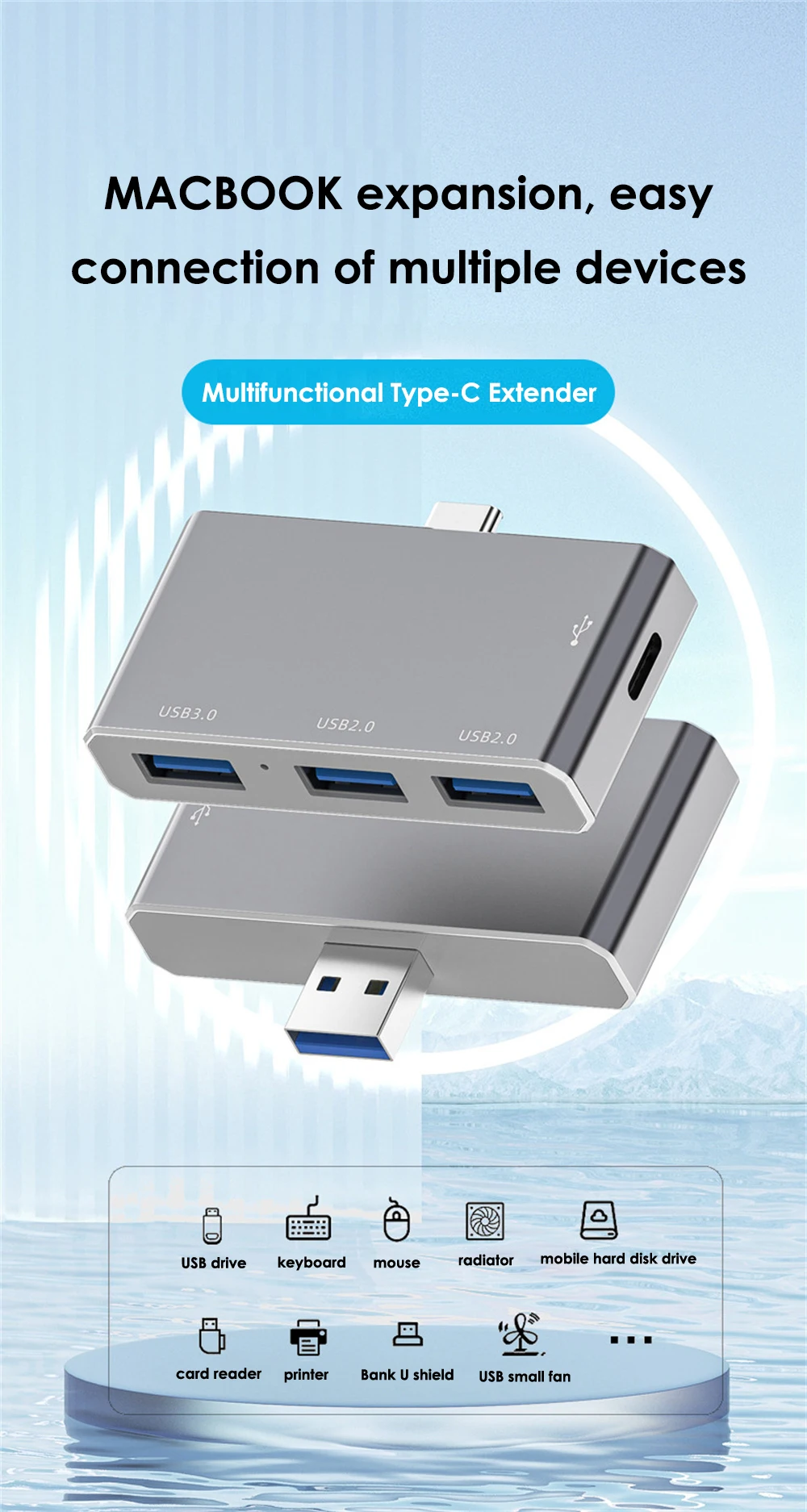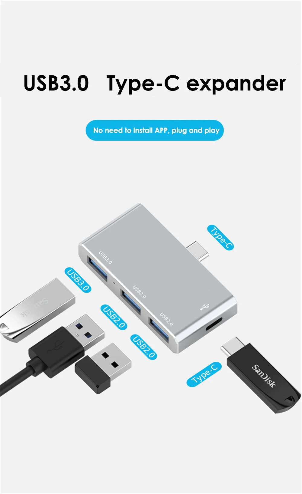RYRA tipo-c hub Cuatro en Uno Oficina laptop expansión dock Wide use un remolque cuatro concentradores USB3.0/USB2.0/Type-C2.0 para ordenador