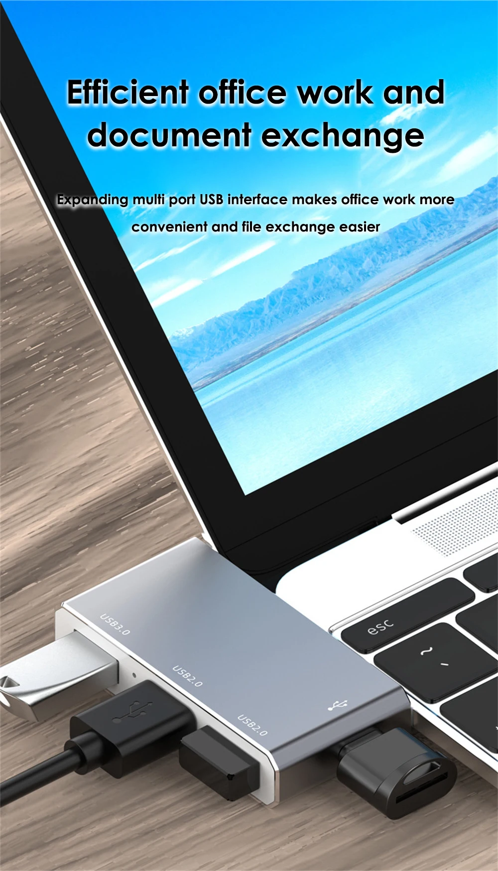 Comprar RYRA-concentrador de red tipo C Cuatro en Uno para ordenador, estación de expansión para portátil y oficina, uso amplio, un remolque, cuatro concentradores, USB3.0/USB2.0/Type-C2.0