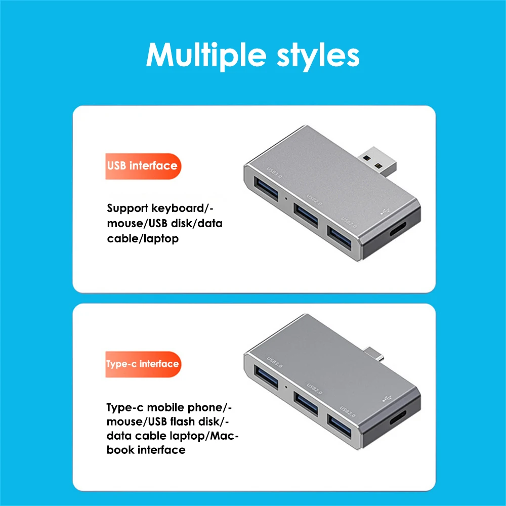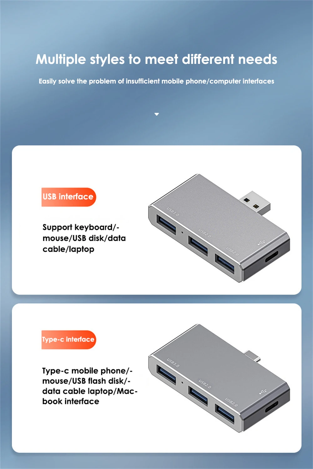 1.【 4 en 1 】 este tipo de concentrador USB es suficiente para satisfacer sus necesidades diarias porque hay 3 adaptadores, conveniente para conectar sus otros dispositivos a su ordenador.