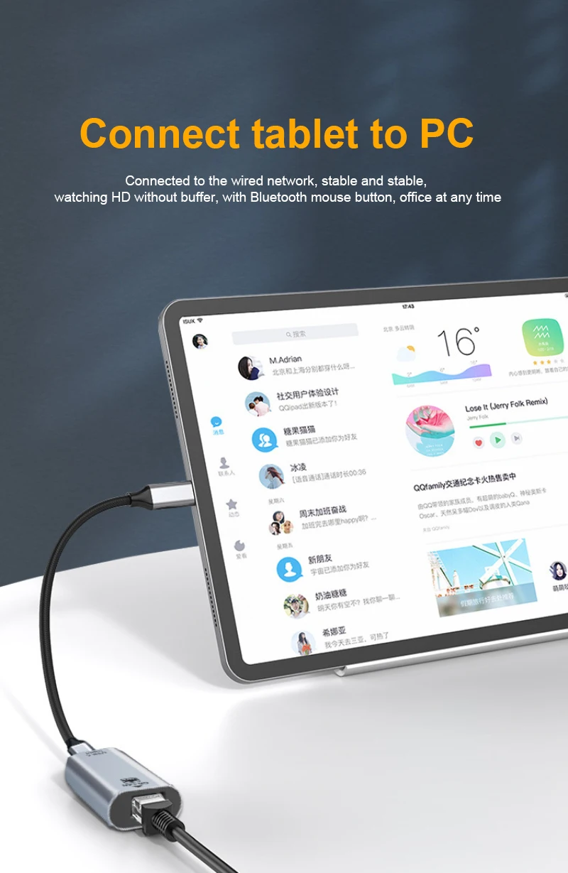 Comprar RYRA-Conector de puerto de red tipo c hembra a RJ45, adaptador inalámbrico adecuado para ordenador/teléfono móvil/tableta, plug and play