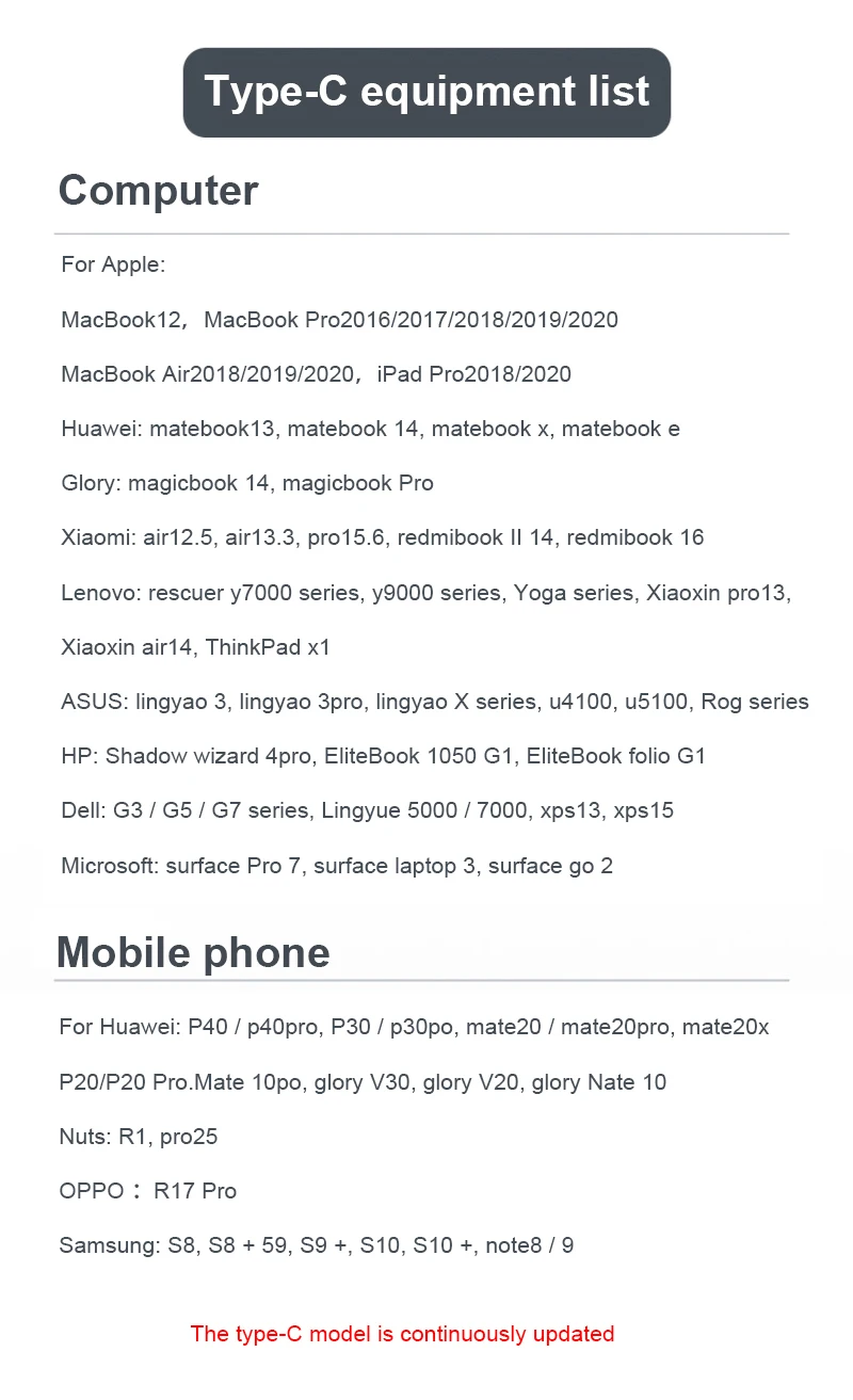 Admite ordenadores, teléfonos móviles y tabletas con interfaces tipo C.