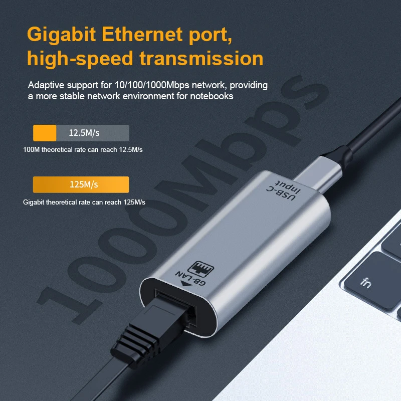Conector de puerto de red tipo C hembra a RJ45 Plug and Play adaptador inalámbrico adecuado para computadora/teléfono móvil/tableta
