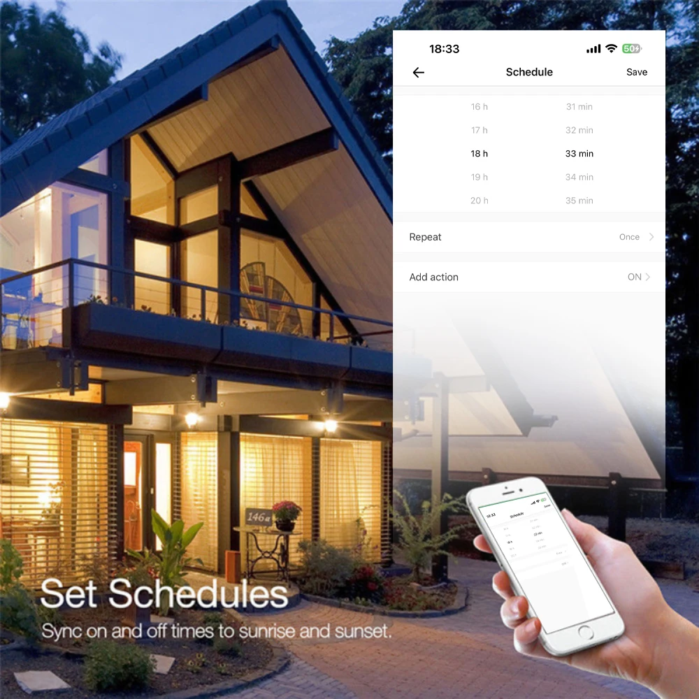El temporizador se puede configurar fácilmente según sus propias necesidades. Es más conveniente para usted configurar un Horario para ejecutar el enchufe automáticamente. Disfrute del eWelink que ahorra trabajo sin tener que encender y apagar la aplicación o controlarla manualmente.