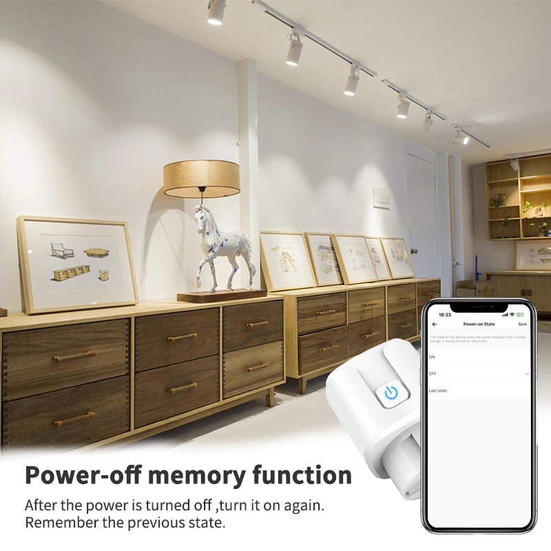 Es fácil conectar el dispositivo con su teléfono inteligente o tableta y luego controlar el enchufe en cualquier lugar y en cualquier momento de acuerdo con sus propios requisitos a través de la aplicación eWelink. Disfrute de su conveniente eWelink tanto si está de vacaciones/negocios como en casa.