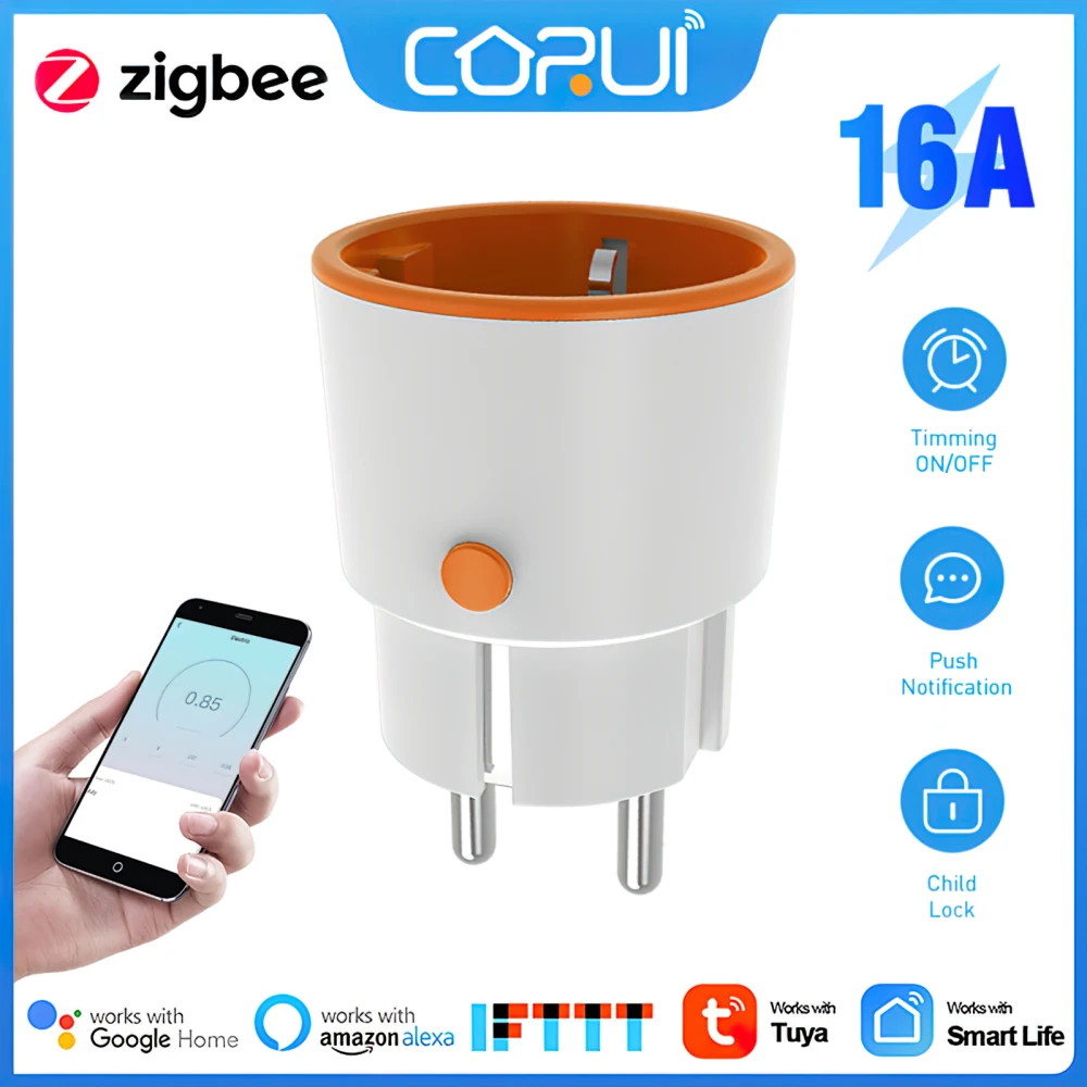 Comprar RYRA-enchufe inteligente Tuya Zigbee 3,0, toma de corriente de 16A, medidor de 3680W, Control remoto por voz, funciona con Alexa y Google Home