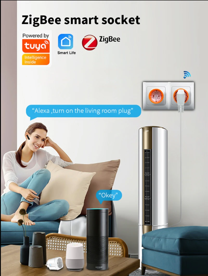 El enchufe inteligente ZigBee es perfectamente compatible con Amazon Alexa y Google Home. Simplemente dé un comando de voz a su Alexa o Asistente de Google Home para controlar sus dispositivos cuando esté en movimiento.