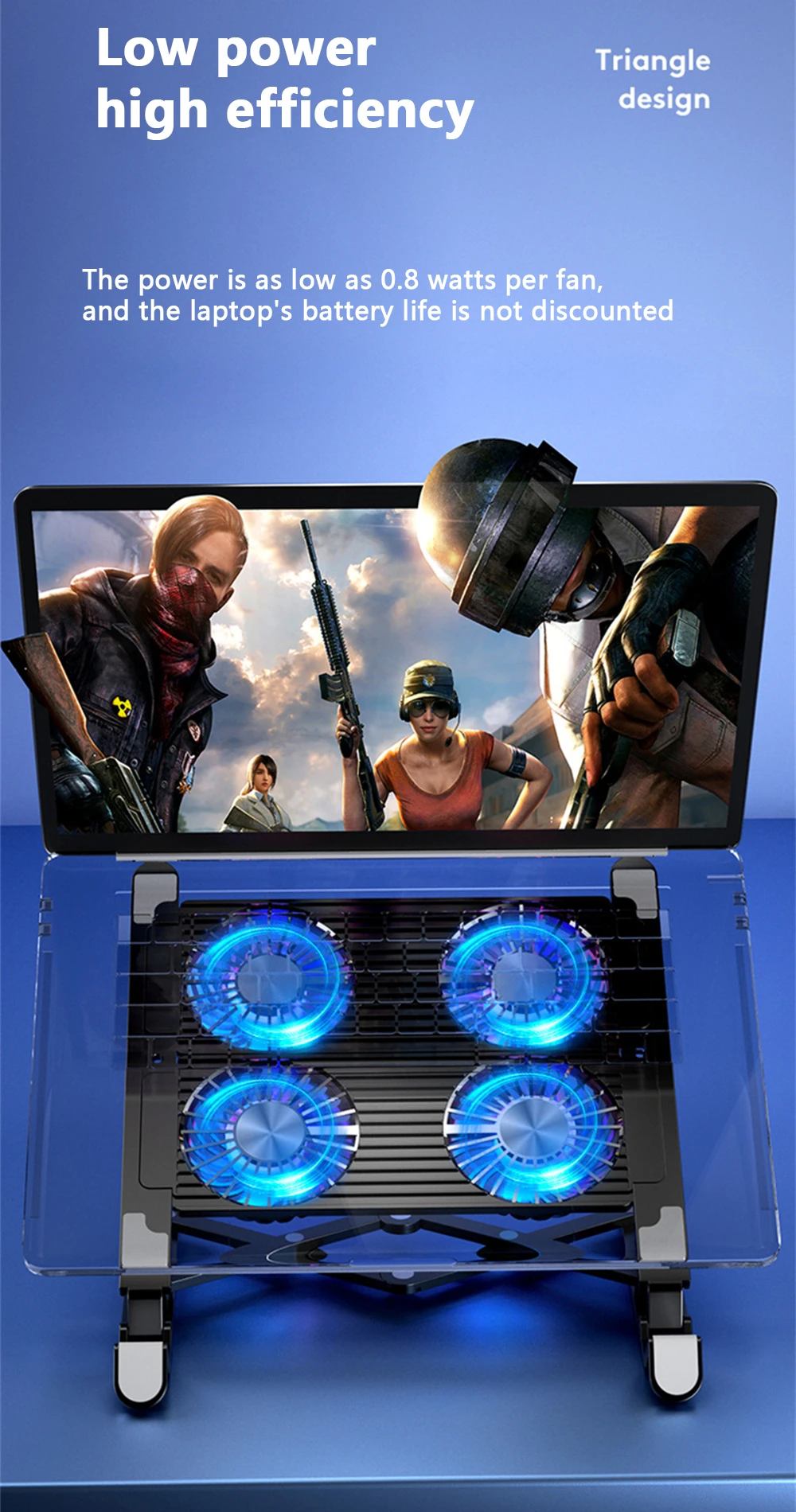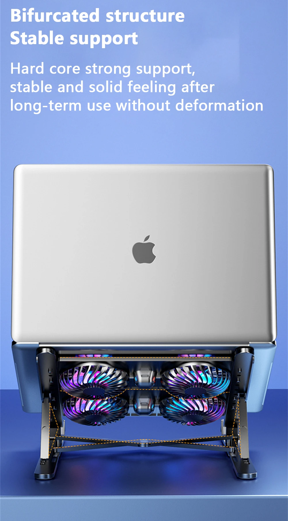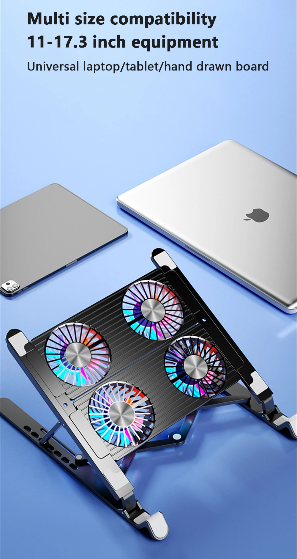 Comprar RYRA-enfriador de ordenador portátil para juegos, ventilador silencioso 2/4, almohadilla de refrigeración plegable, soporte portátil de altura ajustable para 11-17,3 pulgadas
