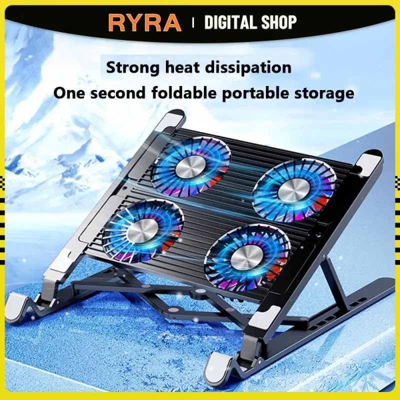 Comprar RYRA-enfriador de ordenador portátil para juegos, ventilador silencioso 2/4, almohadilla de refrigeración plegable, soporte portátil de altura ajustable para 11-17,3 pulgadas