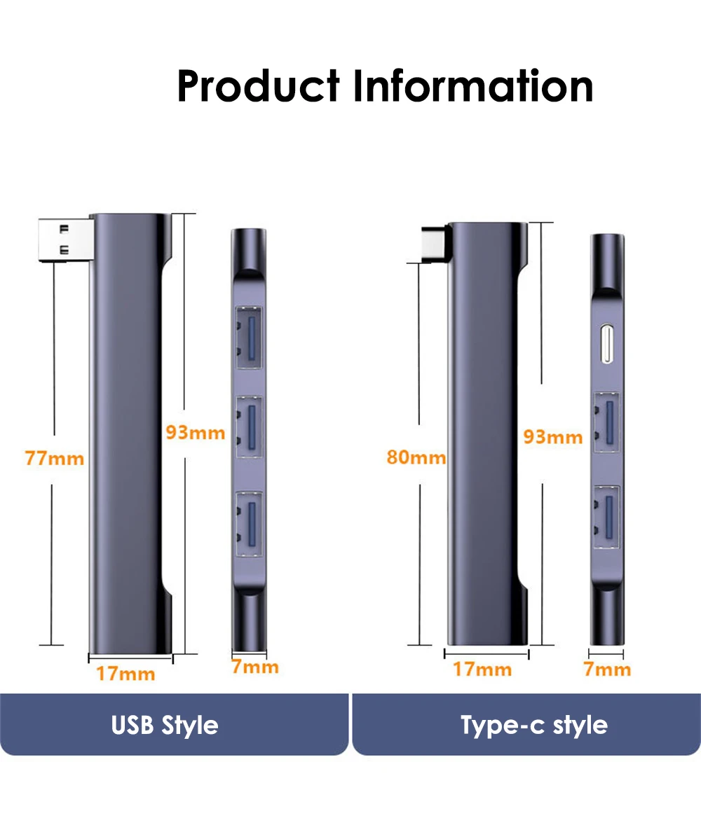1.【 4 en 1 】 este tipo de concentrador USB es suficiente para satisfacer sus necesidades diarias porque hay 3 adaptadores, conveniente para conectar sus otros dispositivos a su ordenador.