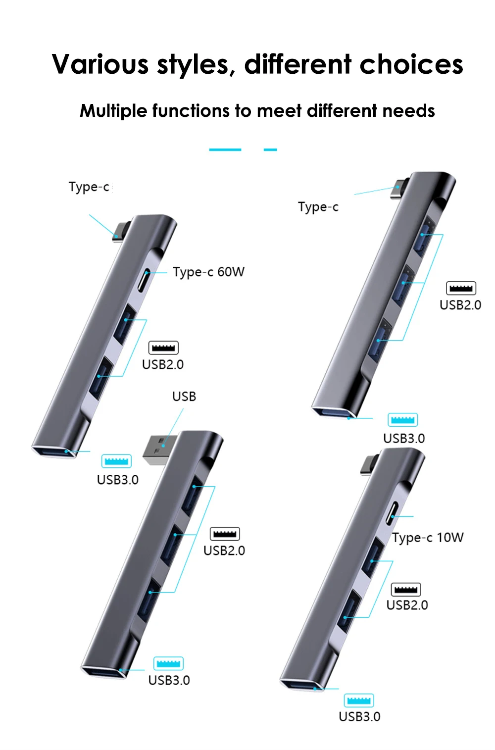 Comprar RYRA-estación de acoplamiento Universal USB2.0/USB3.0, divisor tipo C, Plug Play, Mini Hub USB PD, extensor de alta velocidad, accesorios para ordenadores
