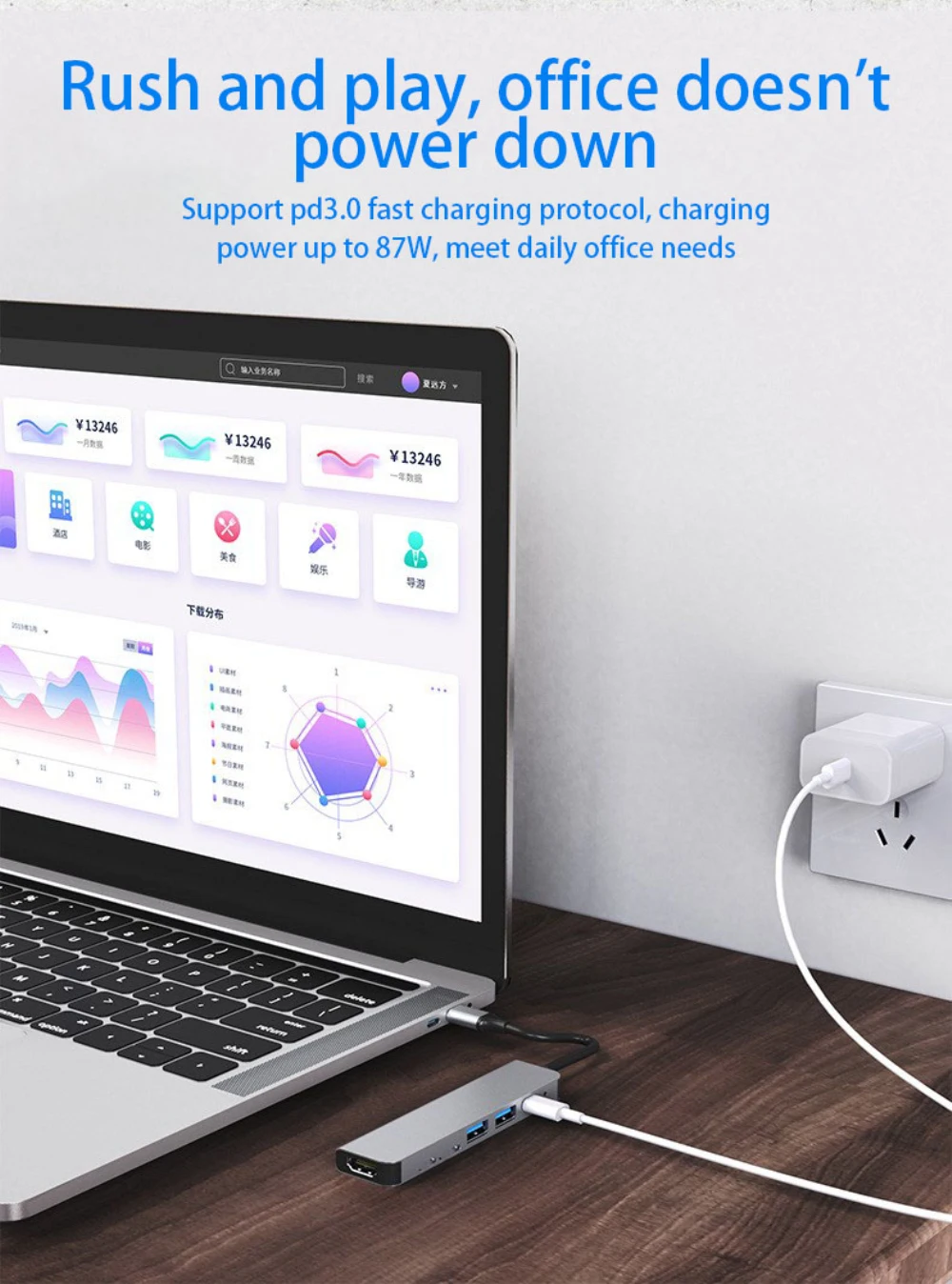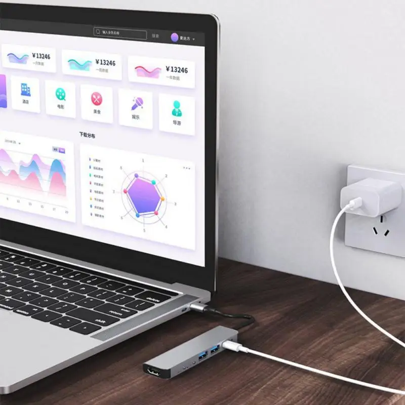 Fuente de alimentación 5 en 1 TYPE-C a HDMI USB3.0 * 2 RJ45 100 M PD