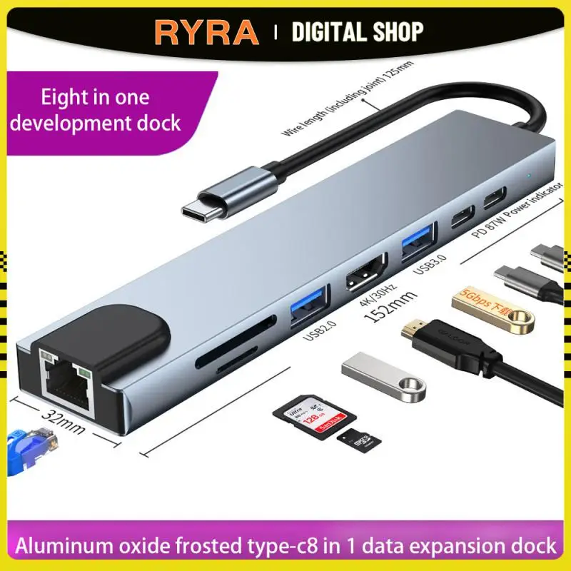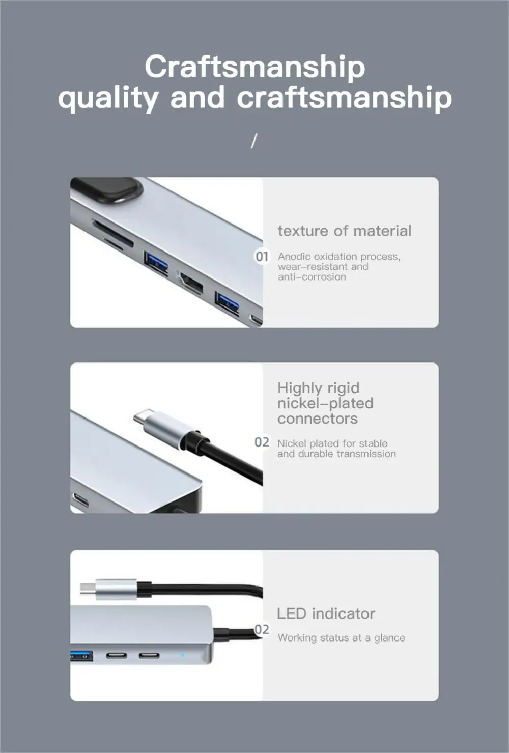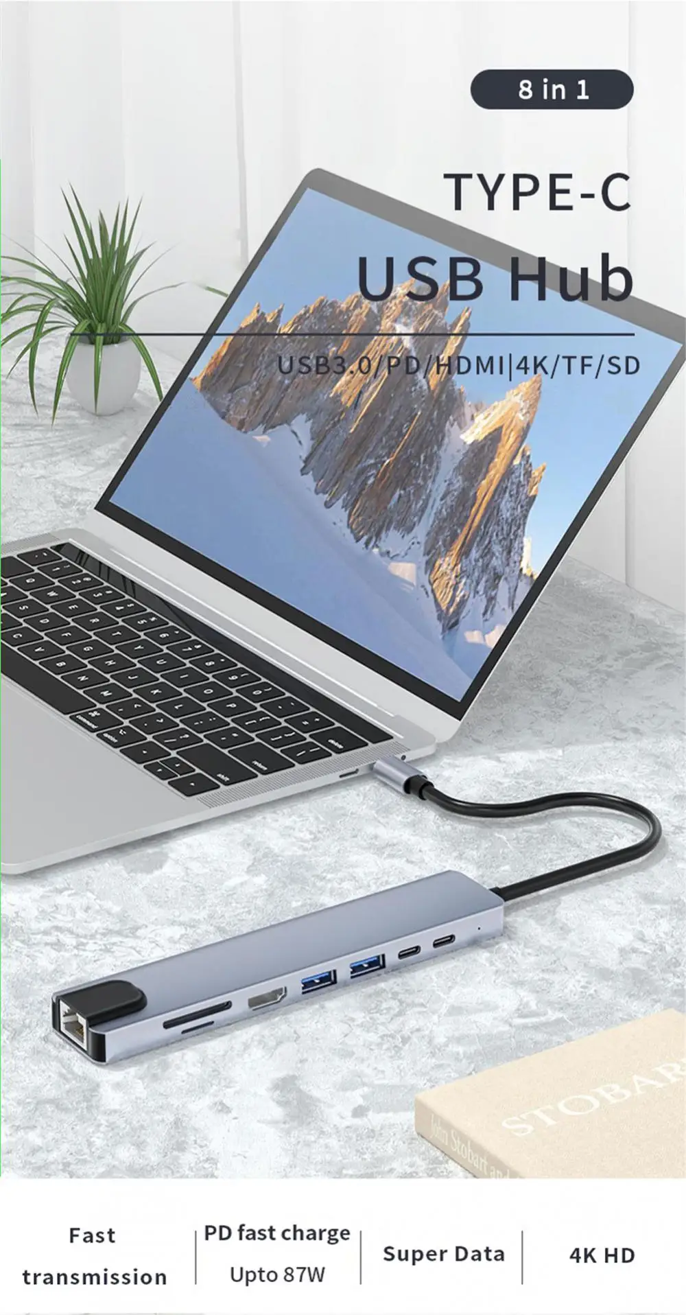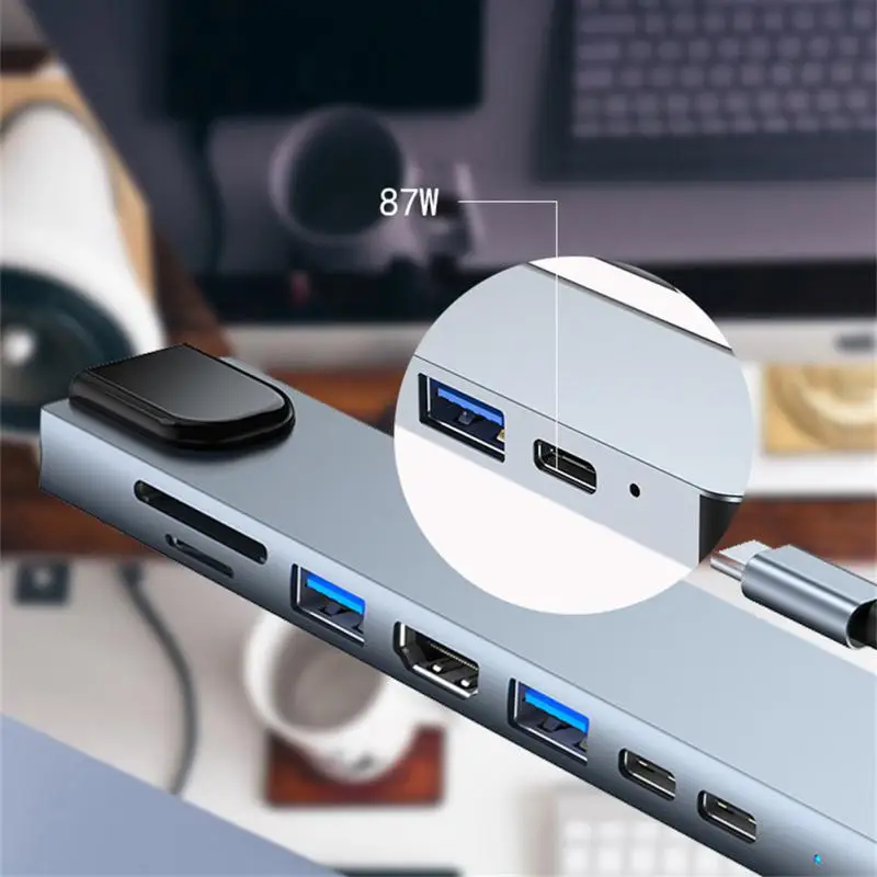 Fuente de alimentación ocho en Uno tipo c a hdmi usb3.0 usb2.0 pd datos pd sd tf rj4