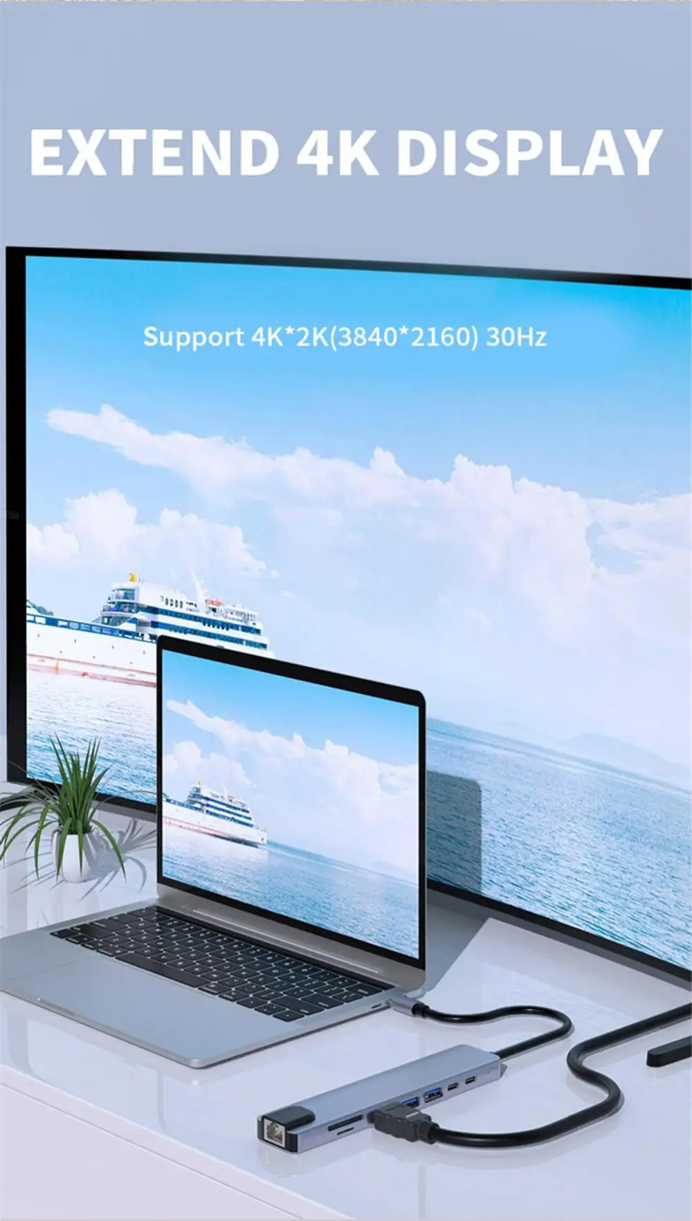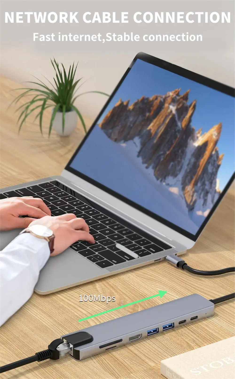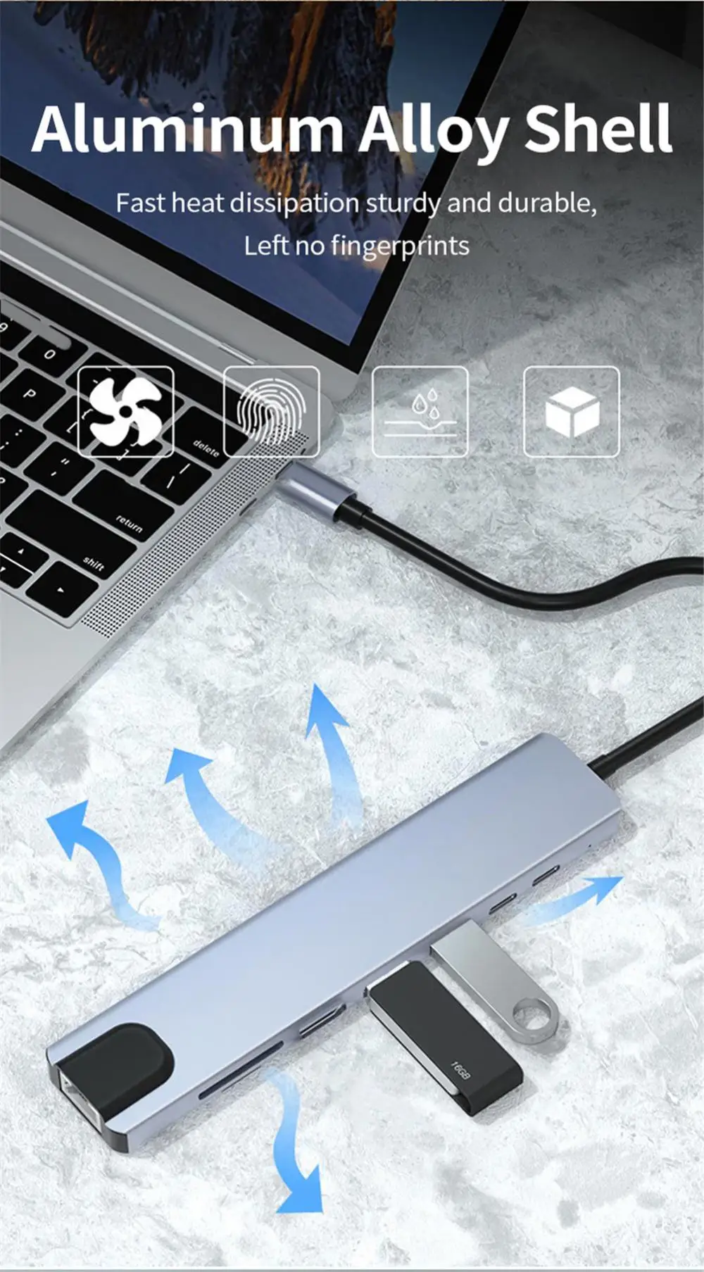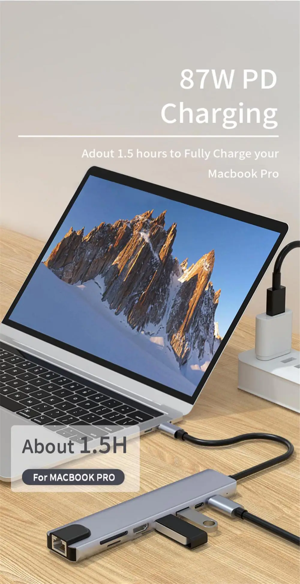 Fuente de alimentación ocho en Uno tipo c a hdmi usb3.0 usb2.0 pd datos pd sd tf rj4