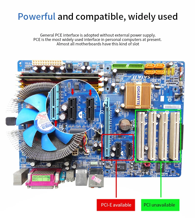Puerto PCIe estándar, funciona con la mayoría de los ordenadores destop. Instalar para usar, no necesita ningún software de controlador.