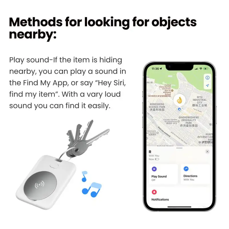 Si el artículo está dentro del rango de búsqueda de Bluetooth, puede usar la aplicación "Find My" para que el dispositivo antipérdida reproduzca un sonido para ayudar a encontrar el artículo perdido.