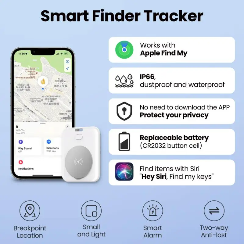 El localizador GPS RYRA Bluetooth funciona con Apple Find My APP, rastreador inteligente, dispositivo antipérdida, Mini buscador, sistema IOS de posicionamiento Global