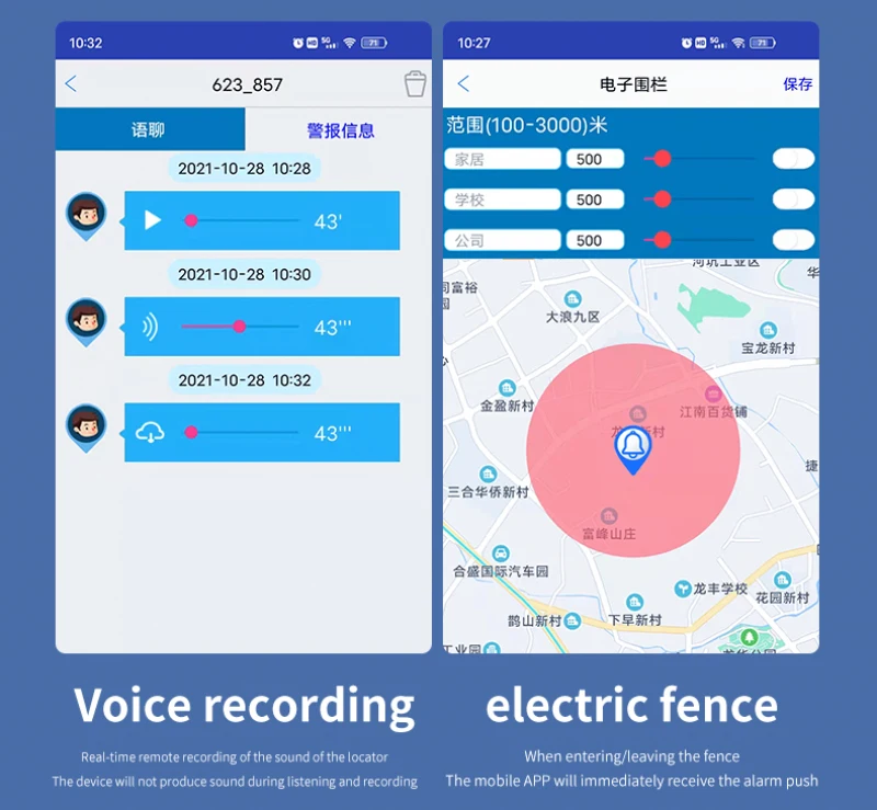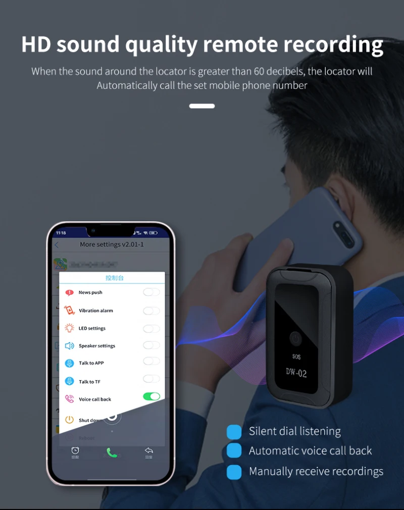 Cuando el sonido alrededor del localizador es superior a 60 decibelios, el localizador llamará automáticamente al número de teléfono móvil establecido