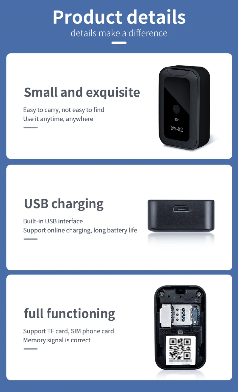Comprar RYRA-Mini rastreador GPS para coche, DW-02 de seguimiento en tiempo Real, antirrobo para vehículo, mascotas, ancianos, niños, localizador antipérdida, posicionador de mensajes SIM