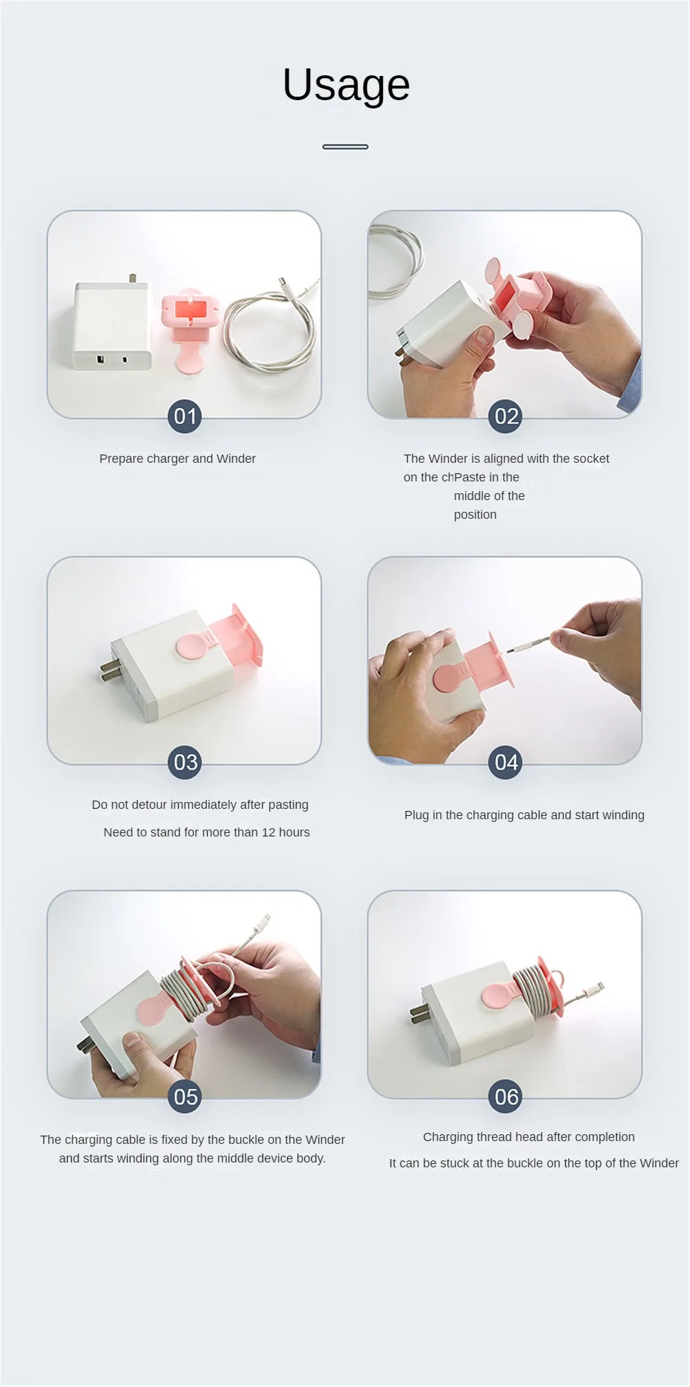 1. Soporte de almacenamiento de bobinado, adaptador de corriente universal