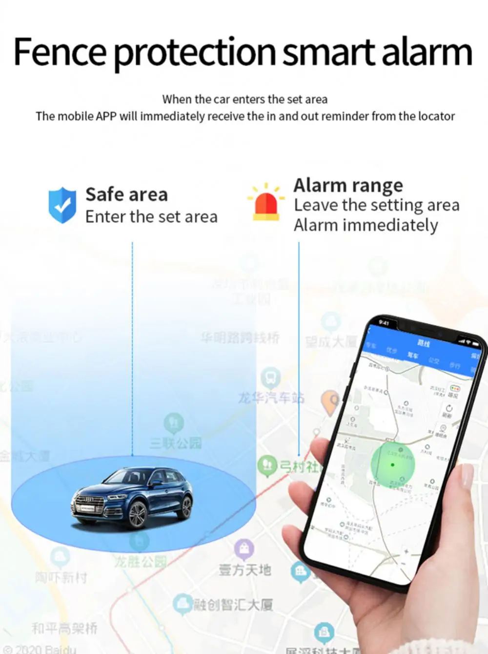 2、Fence Protection Safety Reminder: Set a safe area. When the car enters or leaves the safe area, the mobile phone will receive a reminder here. You can track the car without opening the app.