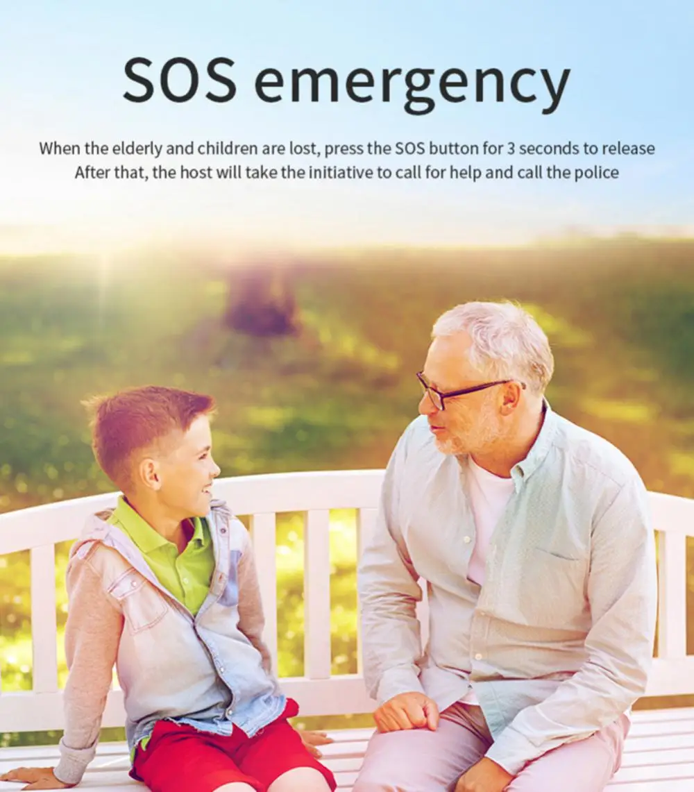 5、SOS One Button-emergency Help: When the elderly and children are lost and encounter danger, press the SOS button for 3 seconds and release, and the host will actively call the emergency call to call the police.