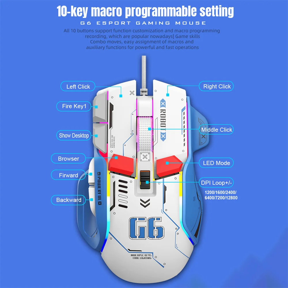 5 [Configuración de programación macro de 10 teclas] Las 10 teclas admiten Personalización de funciones y grabación de programación macro, combinación de habilidades de juego actualmente popular, fácil Asignación de comandos macro y funciones auxiliares, logrando operaciones potentes y rápidas