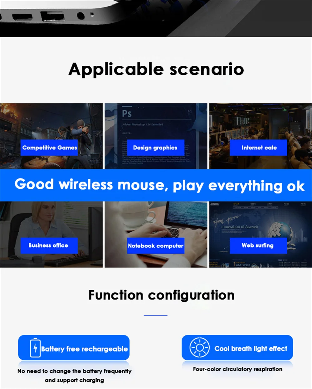 1. Diseño ergonómico, buenas manos de ratón más cómodas, fácil de operar, sensación íntima