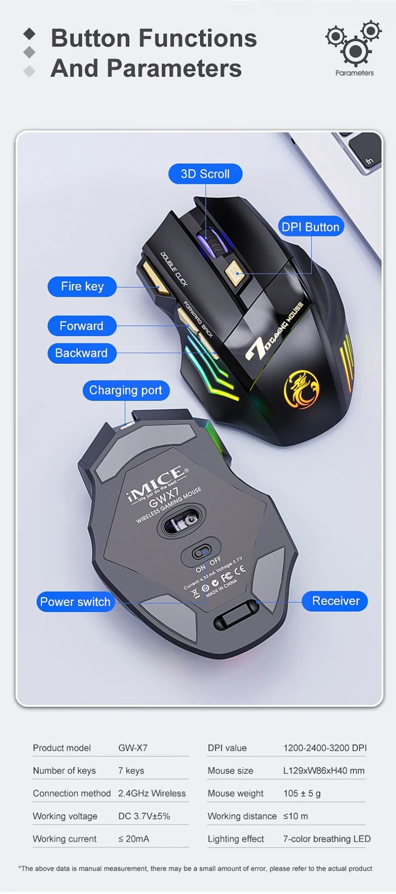 Tamaño del ratón: L129 * W86XH40 mm