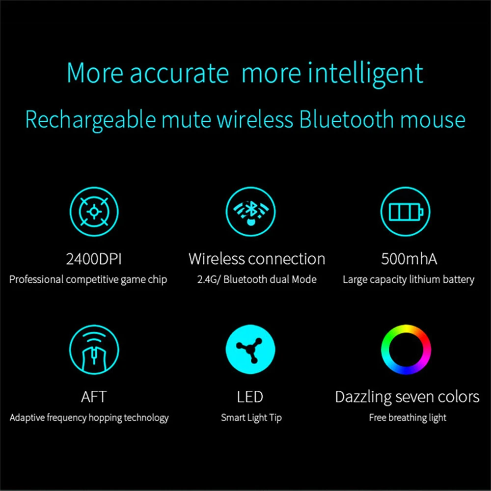 RYRA 2,4G ratón inalámbrico recargable Bluetooth silencioso ergonómico ordenador 2400DPI para Macbook Laptop PC LED retroiluminado ratón para juegos