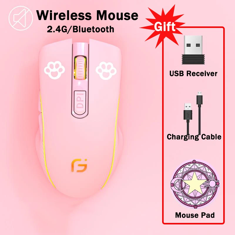 RYRA 2,4G ratón inalámbrico recargable Bluetooth silencioso ergonómico ordenador 2400DPI para Macbook Laptop PC LED retroiluminado ratón para juegos
