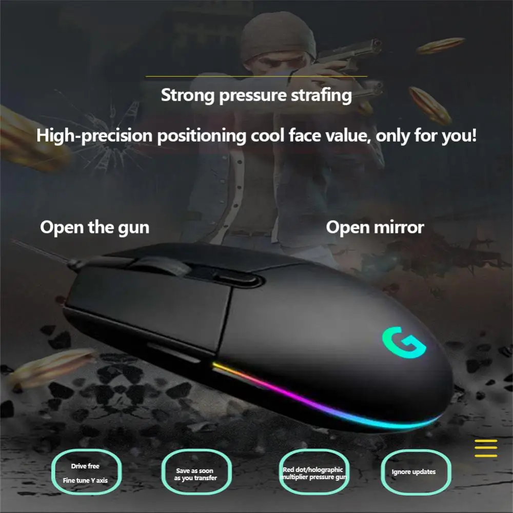 Localiza con precisión el objetivo del juego, ajuste DPI de varias velocidades, sensor profesional del ratón del juego, restaura la pista de movimiento del ratón, ayuda a los jugadores a adelantar con precisión a los oponentes en el juego.