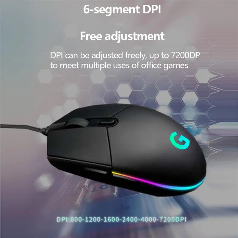 Comprar RYRA-ratón Lightsync G102 para juegos, periférico con cable, 6 botones, 7200 DPI, retroiluminado RGB, para PC, portátil, USB