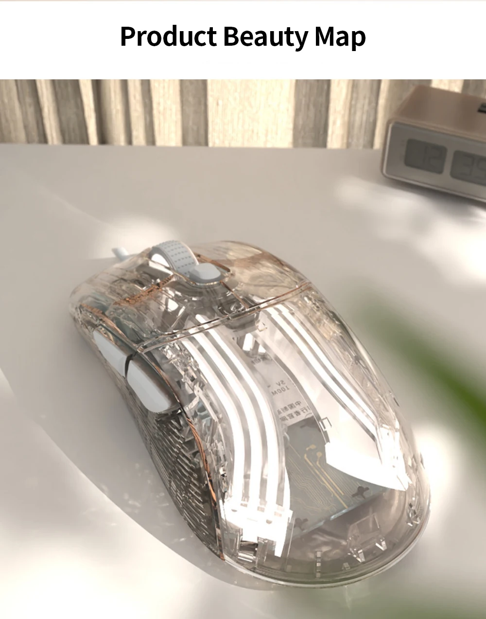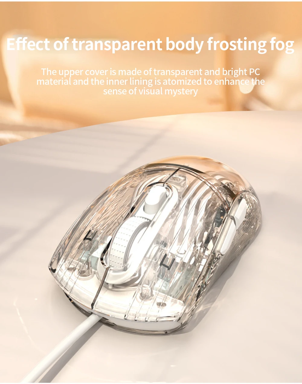 1. Cuerpo transparente, efecto de niebla esmerilada, la cubierta superior adopta la fusión de material de PC resaltado transparente en el interior