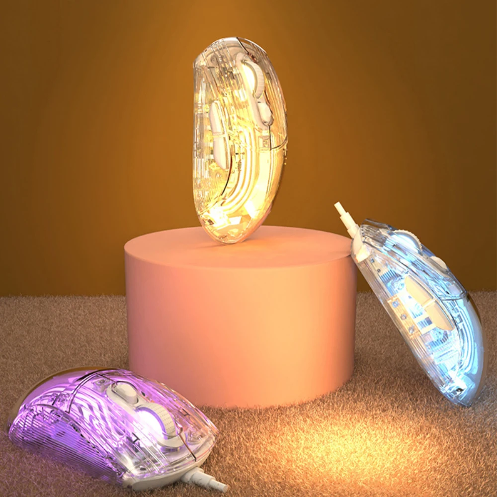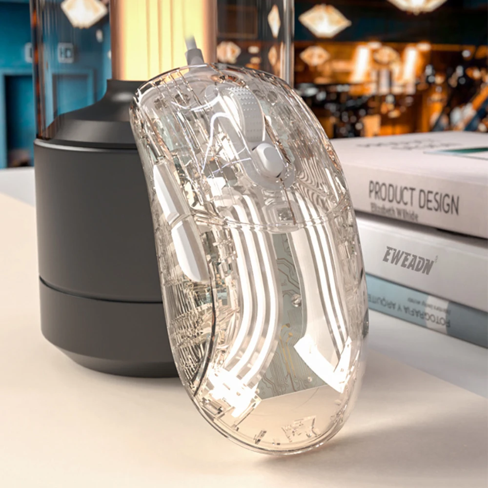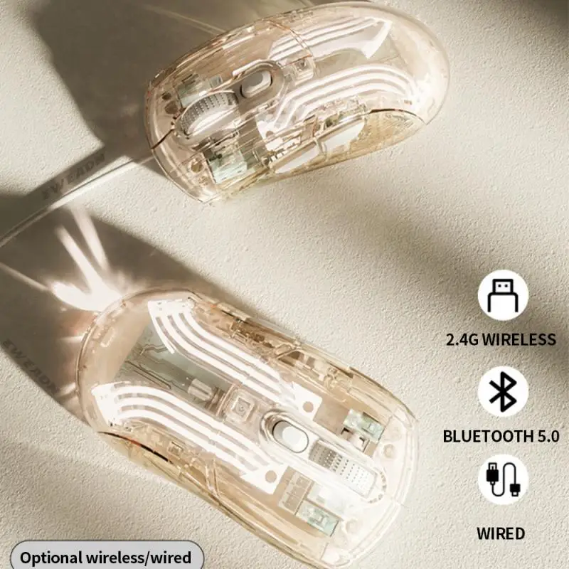 RYRA Crystals Ratón transparente con cable Inalámbrico Bluetooth Ratón Mute RGB Juego ajustable E-sports Office Ratón Bluetooth para niñas