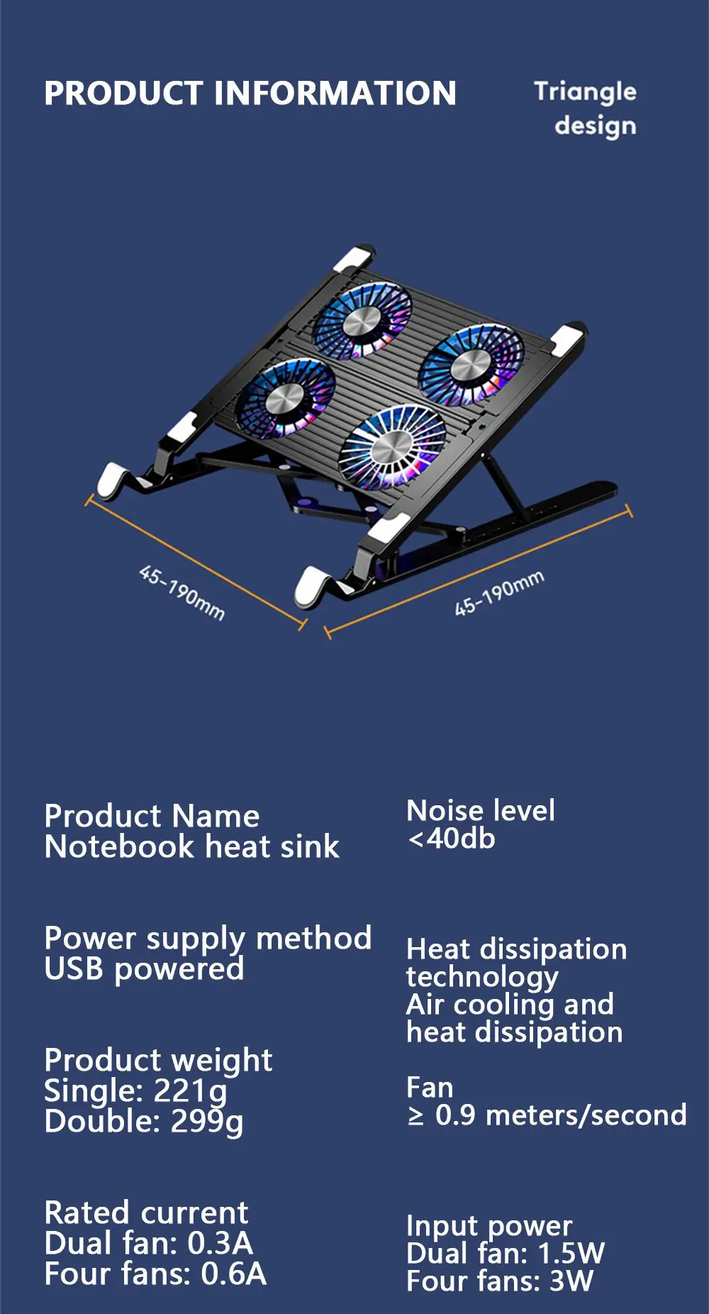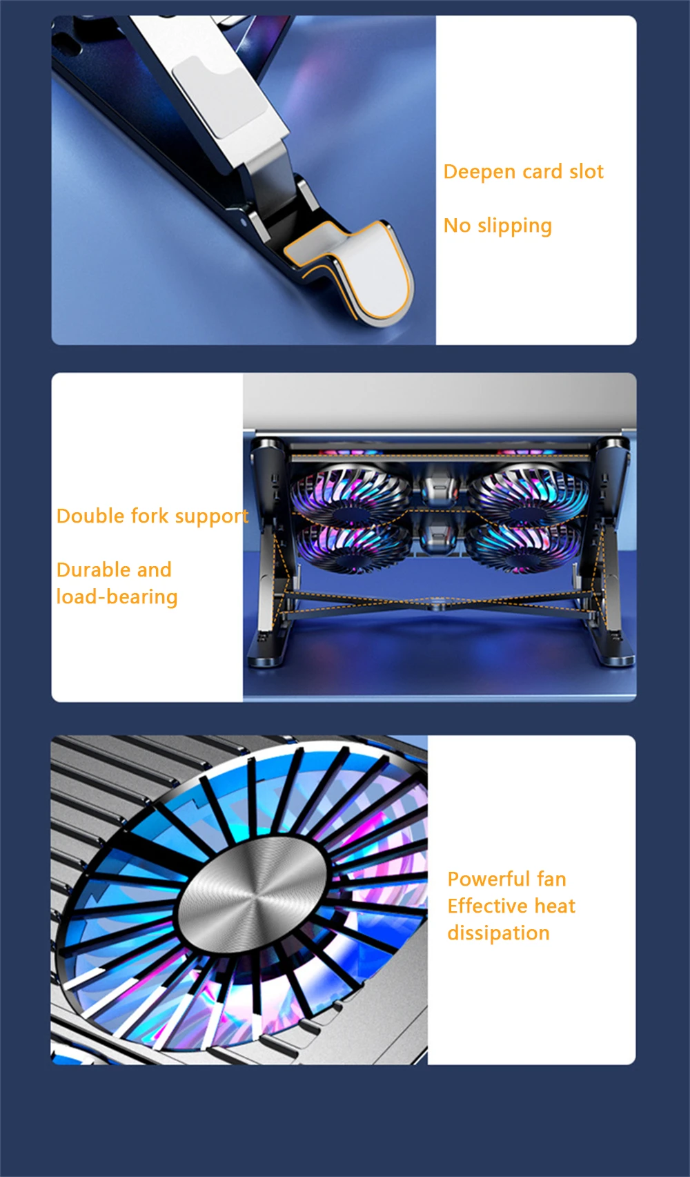 Comprar RYRA-Soporte de escritorio para ordenador portátil, ventiladores de refrigeración, Base de almohadilla de refrigeración, estante de soporte plegable, soporte silencioso para mesa de ordenador portátil